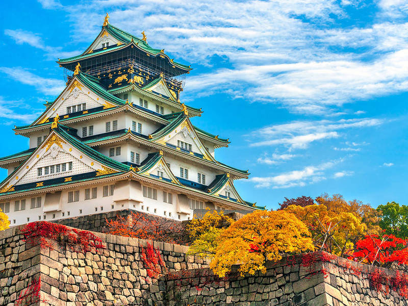 - Lâu đài Osaka (chụp hình bên ngoài). Là điểm đến đậm chất văn hóa, lịch sử được xếp vào hàng “Tam đại danh thành” của Nhật Bản. Đến nơi đây, Quý khách nhất định sẽ không khỏi trầm trồ bởi dáng vẻ tráng lệ nhưng không kém phần cổ kính này.
